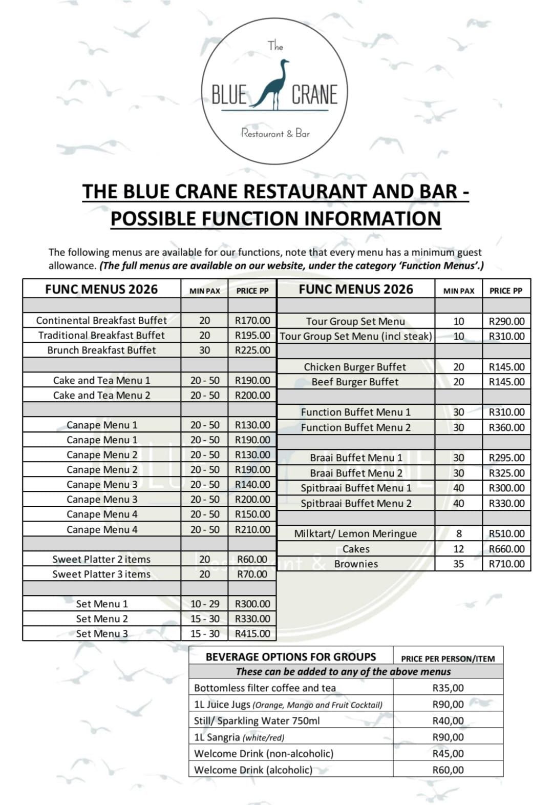 Set Menus (10-29 guests)